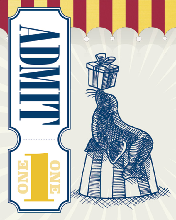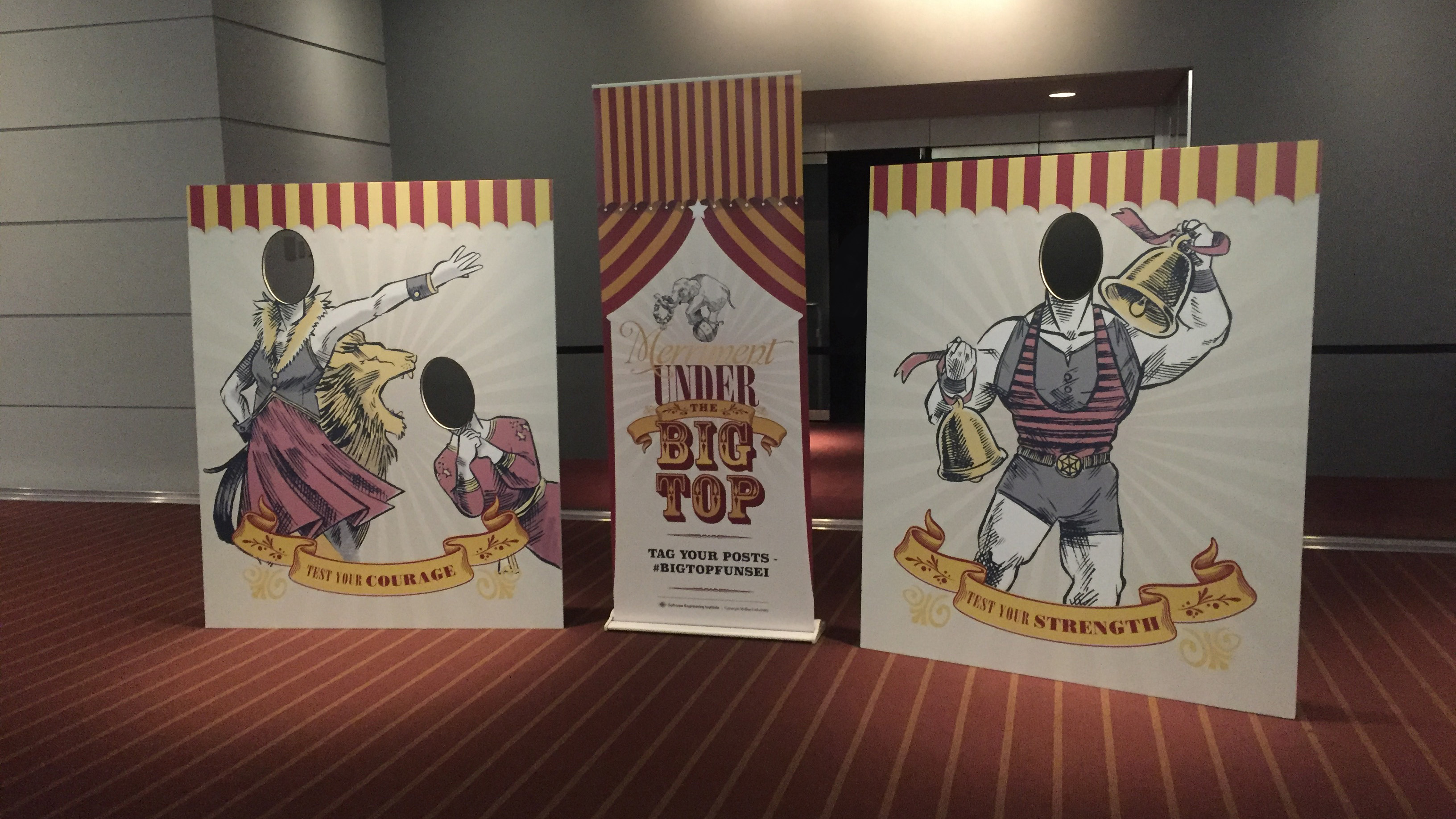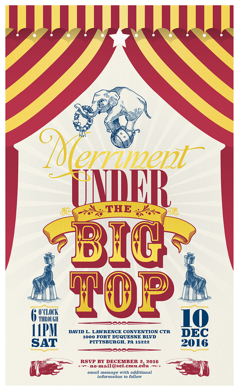 The 2016 theme for the Software Engineering Institute's holiday party was Merriment Under the Big Top, so all material from the invitations to the menus and the party favors were done up carnival style.